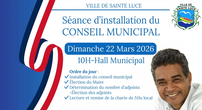 Le maire de la ville de Sainte Luce, Nicaise MONROSE informe la population qu’un conseil municipal se tiendra le jeudi 13 mars 2025, à